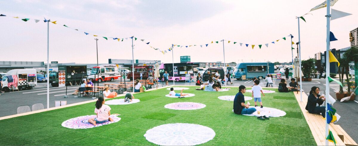 Community Brandingアウトレットの大型駐車場を舞台に、“アメリカ西海岸リゾート”をイメージしたオープンスペースを展開しました。会場には、ウェストコーストで人気のサードウェーブコーヒー「The Coffee Bean & Tea Leaf」や、「Four Barrel」提携店「SUNNY’S COFFEE feat. Four Barrel」など、多彩なフードショップが出店。あわせて、芝生パークと食事スペースを一体化し、親子でも安心してくつろぎながら過ごせる大型什器を制作しました。ショッピングの合間に家族や友人と立ち寄り、思い思いに過ごせる空間づくりを、企画からデザイン、制作、当日の運営まで担当しました。