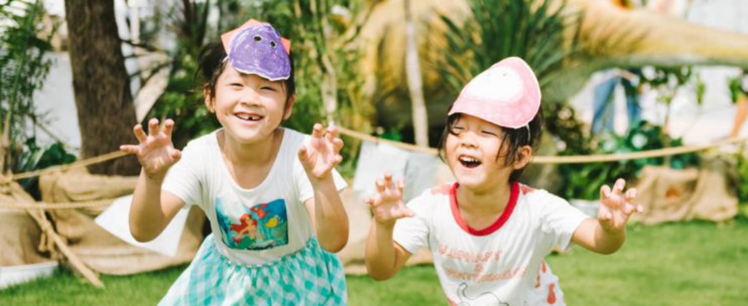 日中は、子どもたちの遊び場となる「プレーパーク」や、恐竜をテーマにしたワークショップ「オリジナルの恐竜お面を作ろう」を開催しました。